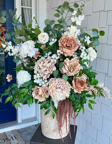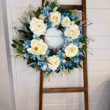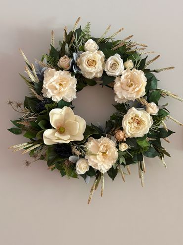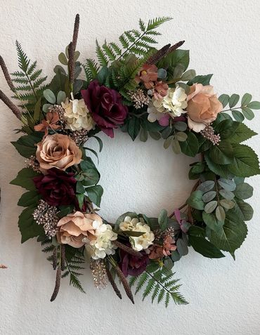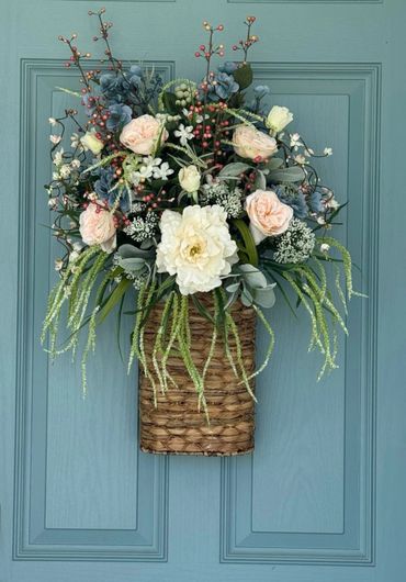 Although my first passion is wreath making, I have come to enjoy the challenge of designing centerpieces for all occasions, including tabletop decor, floral gifts, and wedding flowers.
