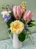 There is a wide variety of floral colors and styles in my design studio. You are welcome to stop in for a consultation, when we can play with color palettes, styles, and shapes. It's also a great time to look at inspiration pictures you have. I'll start creating and send pictures of trial designs until you tell me I've captured your vision. Then I'll get it ready for pick up or delivery.