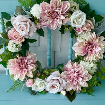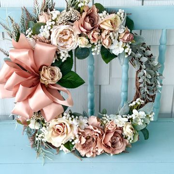 Look for the vintage, pink, glass deer top left...the inspiration for the wreath.