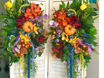 Orange, garnet, yellow, purples and blue welcome your guests with the fusion of North and South in these stunning swags!